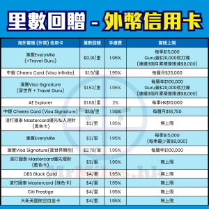 飛行里數信用卡比較