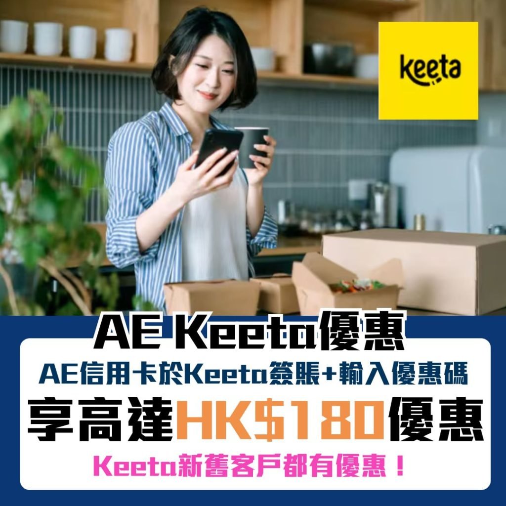 AE Keeta優惠碼2025!今期用AE卡係Keeta叫外賣抵啊!2025年4月1至30日期間,憑AE信用卡喺Keeta嗌外賣+輸入優惠碼可享以下優惠: