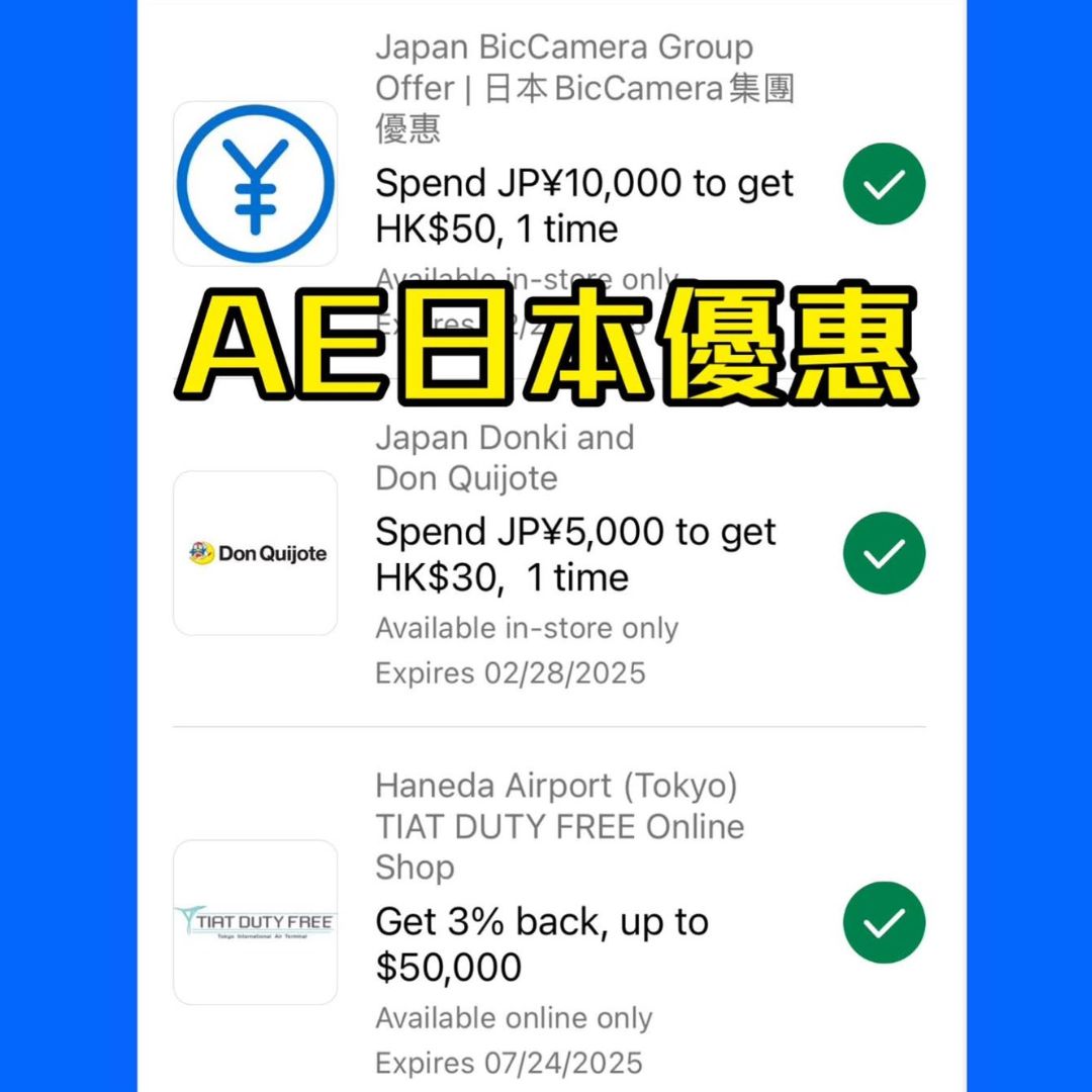 AE新年連續出優惠, 啱啱出完咗人民幣優惠,今日再出咗3個日本優惠,快啲login Amex HK 登記曬啲優惠先:
