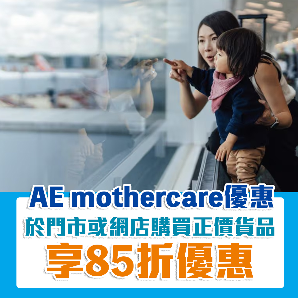 - 憑AE信用卡喺mothercare 實體舖或網上商店簽賬可享85折優惠