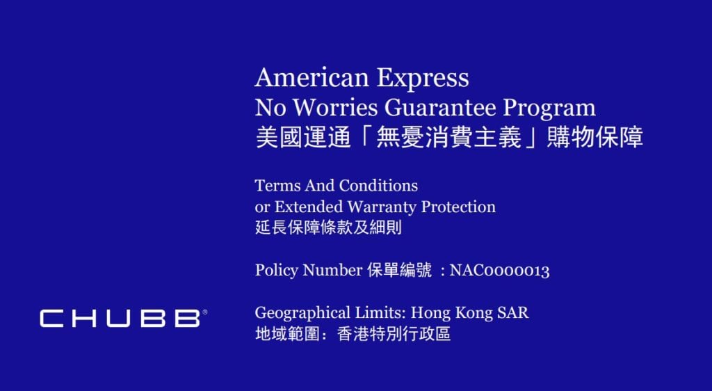 - 呢個保障最主要係指賣俾你間舖一般提供的一至三年貨品保養期滿後,用AE卡買就會「延長保養服務」會額外延長貨品保養期一年。若於本港零售商店購買的貨品意外損壞,每件貨品可獲賠償高達HK$40,000,而每一個會員賬戶每年的賠償額以HK$150,000為上限。