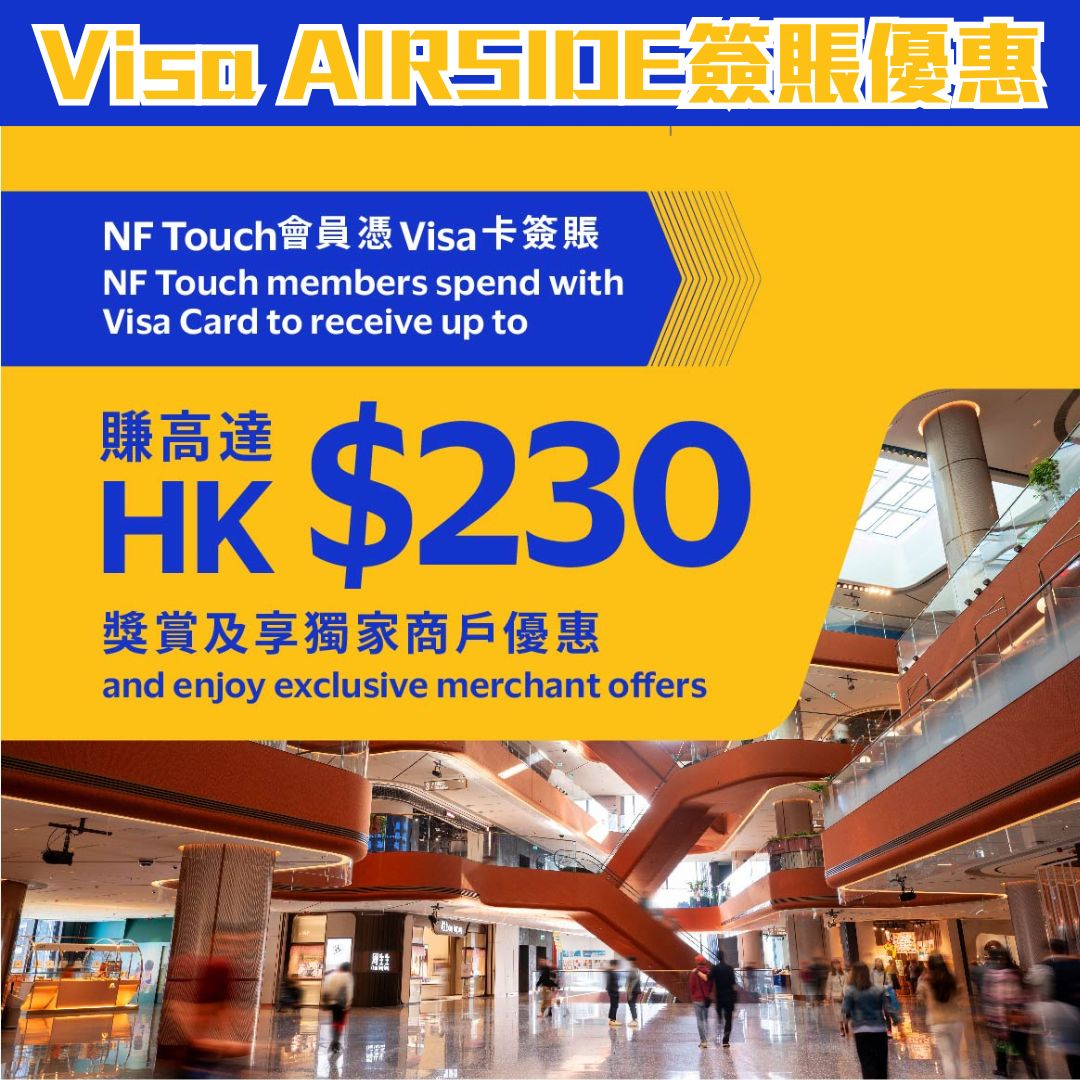 答:Visa AIRSIDE優惠可以賺HK$230回贈