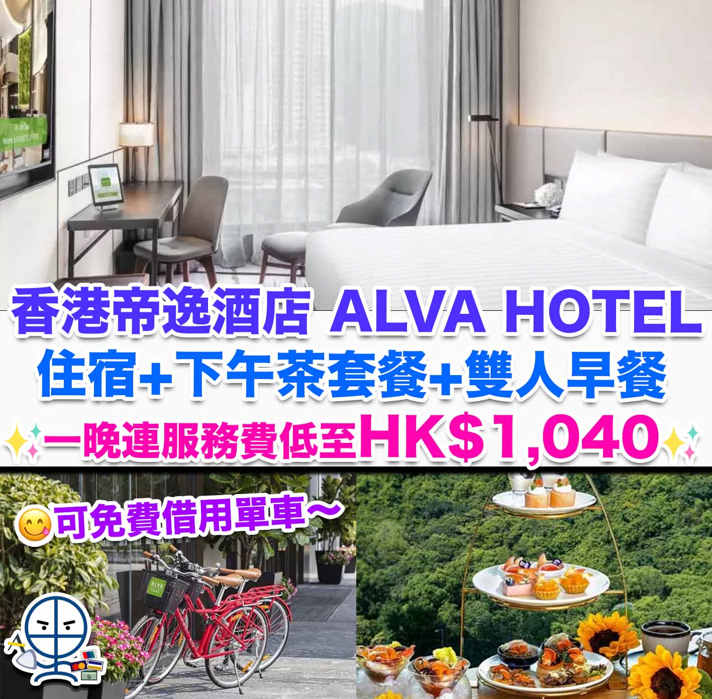 【香港帝逸酒店 ALVA HOTEL BY ROYAL住宿優惠】Staycation住宿+下午茶套餐+雙人早餐!免費借用單車+享用迷你酒吧!一晚連服務費低至HK$1,040!