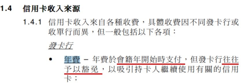 至於點解銀行會waive到第二年年費俾你呢?其實因為月結單上年費係收取緊第13至24個月的年費(paid in advance),啫係收緊「來年」的年費。如果你選擇唔繼續用該信用卡的話,銀行係唔會收到你年費的,我敢講香港所有銀行都係咁玩法。下文就教你4個免俾信用卡年費嘅方法。