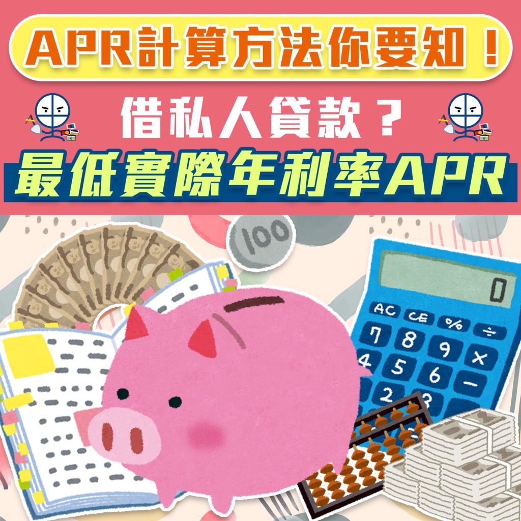 實際年利率APR,係計算曬總貸款成本(包括利息、手續費、行政費、回贈等),再用年利率表示出嚟。即係,就算你借「零利息貸款」,如果包埋手續費同行政費,都可以計算到實際年利率APR,睇到總貸款成本。用實際年利率睇,你就可以用同一個標準去對比曬市場上所有嘅貸款計劃。而HKMA係有俾指引銀行要點計個APR出嚟同埋必需披露的,所以要分貴定平既Loan, 用APR嚟考慮就最公道。