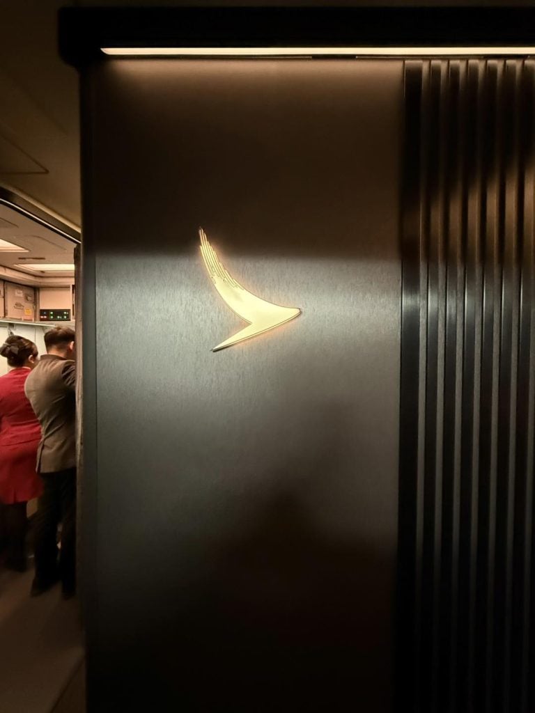 係上一代國泰Business Class真J我自己已經好滿意,每個位都係走道位,180度flat bed而空間配置合理,最優勝既係腳部空間感覺闊落要訓覺時都有足夠舒展空間,呢一點真係比起其他航空公司出色。而今代既Aria Suite 最大既亮點係係多咗道門增加私人空間,環顧新一代Business Class嚟講呢個配置都好必要,出嚟既結果都令人滿意。出咁多里數信用卡嚟儲里數都係為呢啲啫。