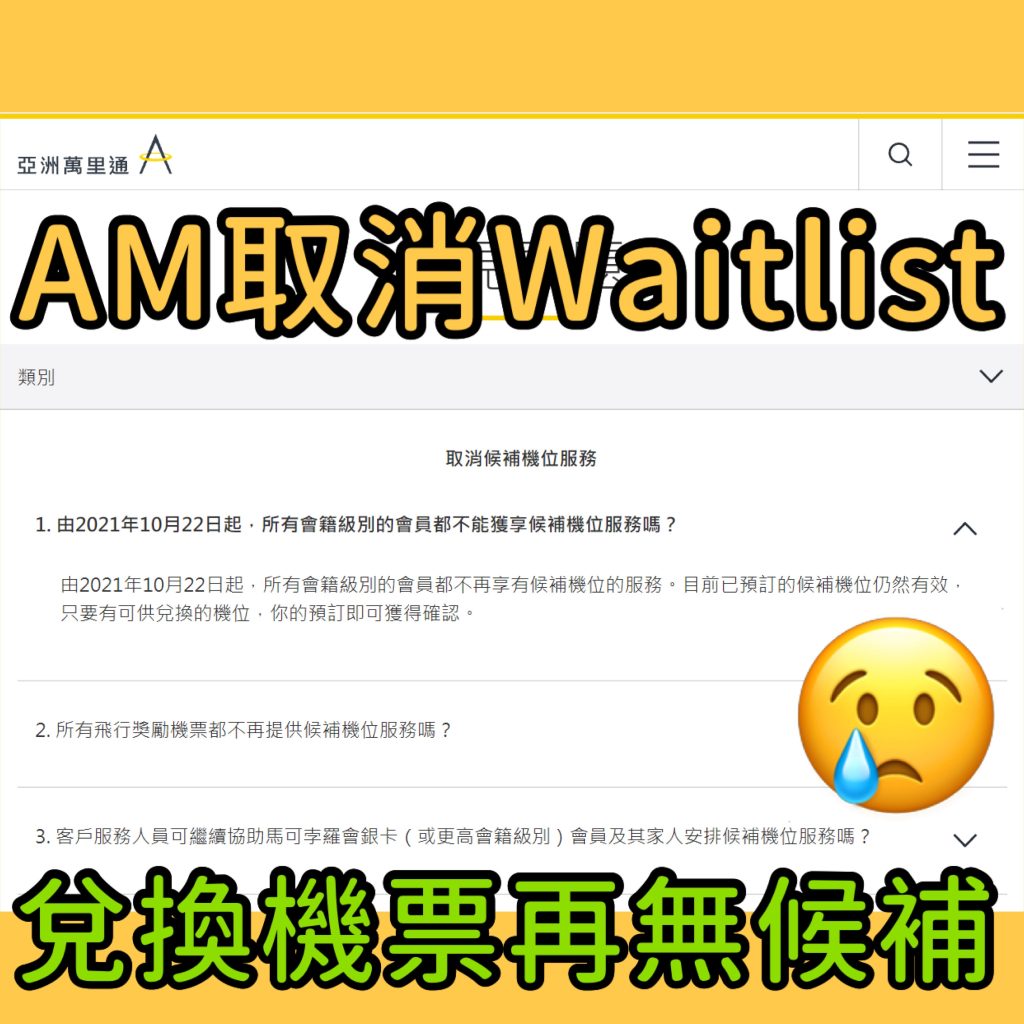 慘,Asia Miles無得再用waitlist等機位了。本身呢個候補機位我覺得幾好用可以唔洗日日睇住有咩位換。對我好咗既地方係本身我只係綠卡仔會員,呢加係全部鑽石卡金卡銀卡會員都無得wait。呢班高級會員就慘啲…有朋友係高級會員又真係真日都wait到@@