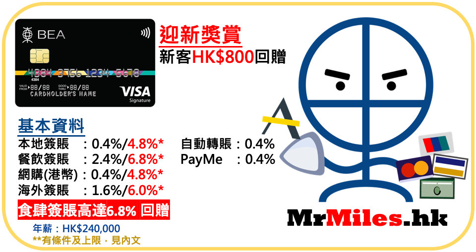 2 thoughts on “【東亞Visa Signature卡】食肆簽賬高達6.8%回贈+迎新簽HK$8,000 有HK$800回贈!食飯消費必備卡”