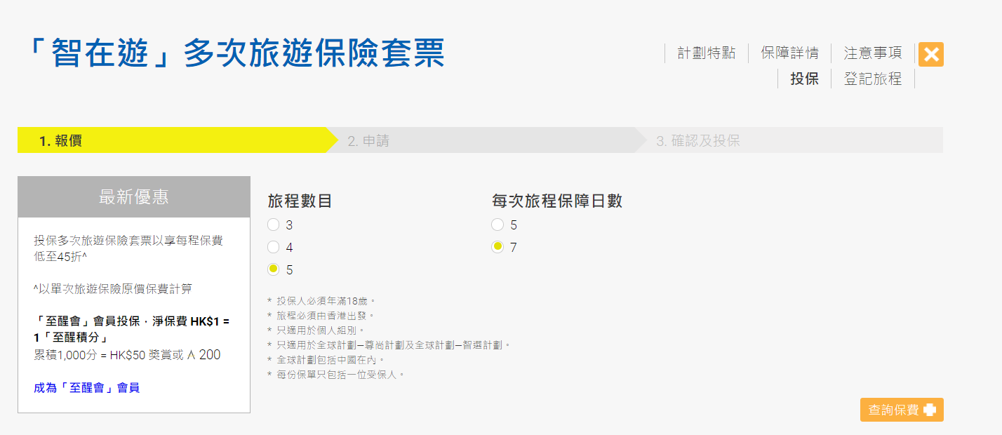 - 非會員透過官網或Blue Cross HK手機App成功投保單次旅保可享7折優惠