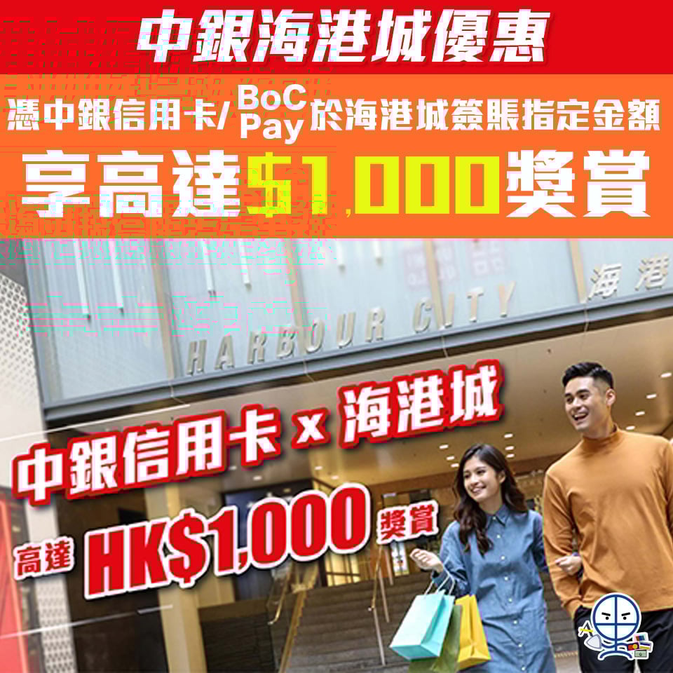 官網詳情:https://www.harbourcity.com.hk/tc/happening/boc-credit-card-spending-rewards/