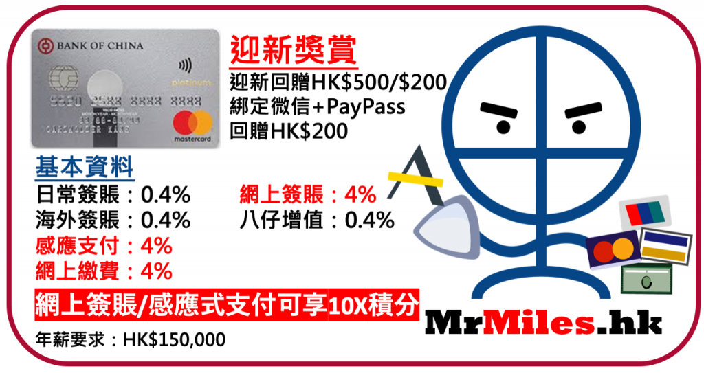 中銀i-Card PayPass/網上簽賬及手機支付享10X積分 迎新HK$500現金回贈