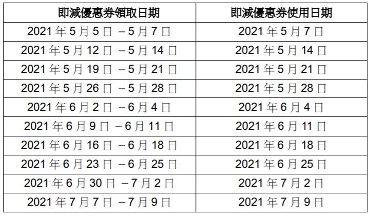 - 推廣期:即日起至2021年7月9日(共10個星期五)