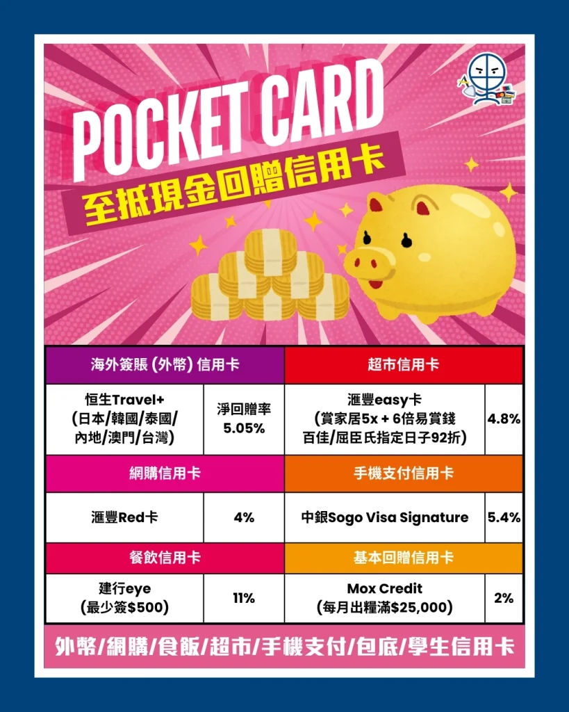 現金回贈信用卡比較 Pocket Card