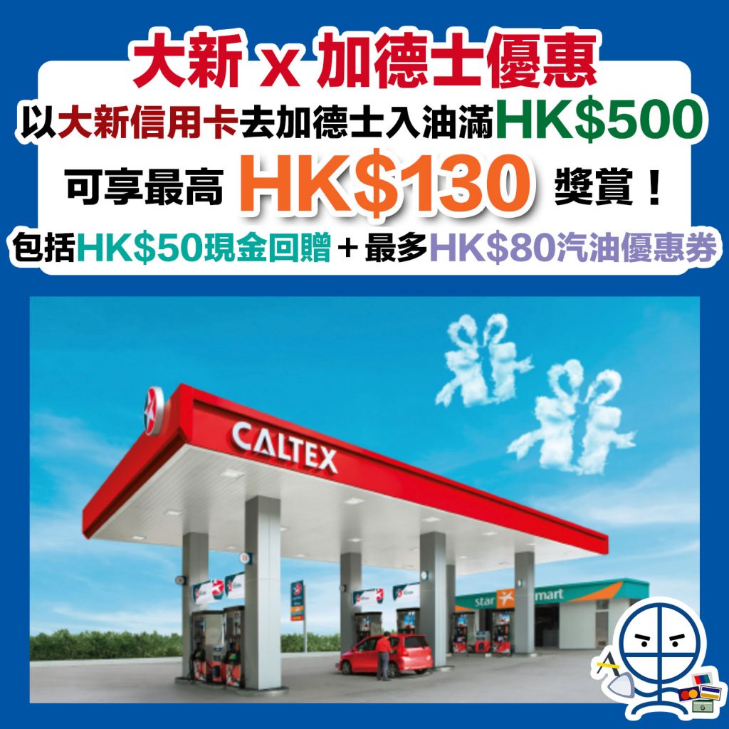 【大新 加德士入油優惠】用大新Visa/MasterCard 去加德士入油可享高達HK$130獎賞!