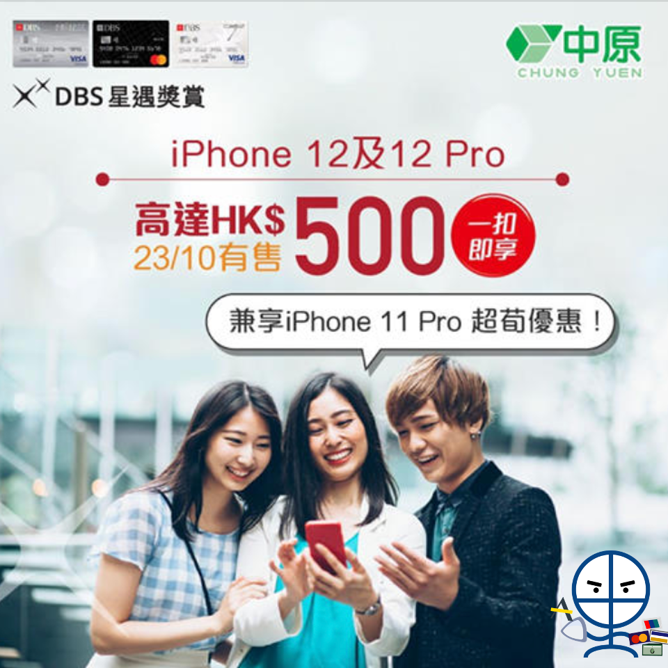 【DBS信用卡中原優惠】中原電器iPhone 12及12 Pro高達HK$500「一扣即享」折扣 10月23日起有現貨