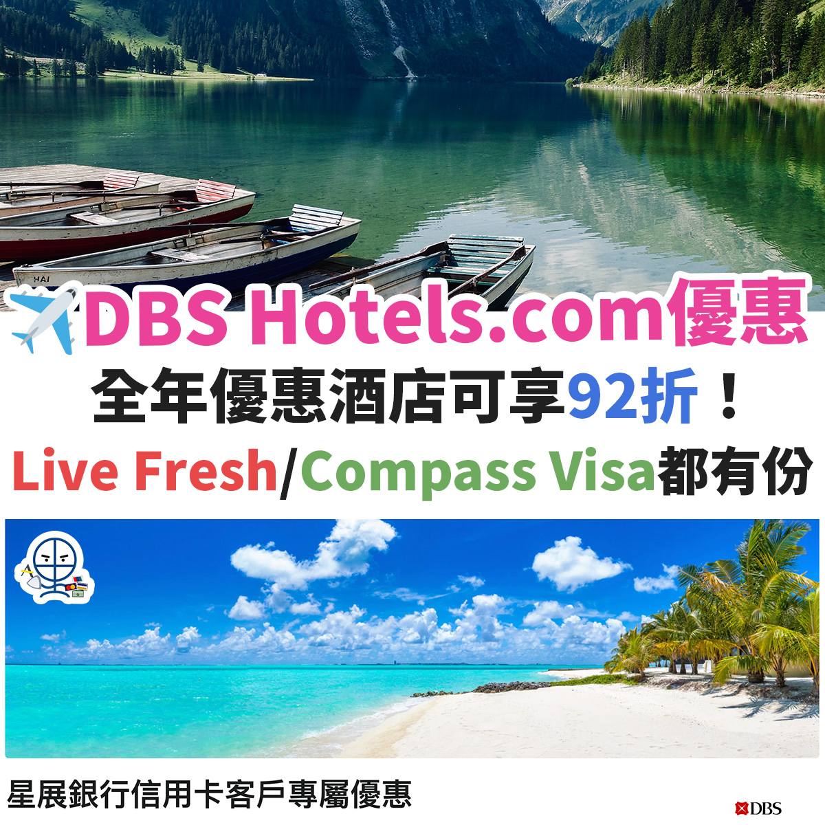 DBS星展銀行 Hotels.com code 優惠 10月最新!憑DBS信用卡喺Hotels.com經指定連結預訂全球酒店,再輸入指定優惠碼就可以有92折!呢個全年優惠嚟,優惠期由即日起至2024年12月31日,而入住期限為2025年6月30日或之前。啱用就唔好錯過啦。