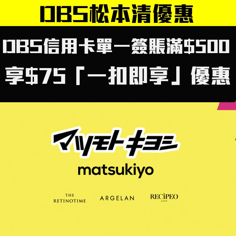 - DBS信用卡於松本清香港門市單一淨簽賬滿HK$500,可享HK$75「一扣即享」折扣