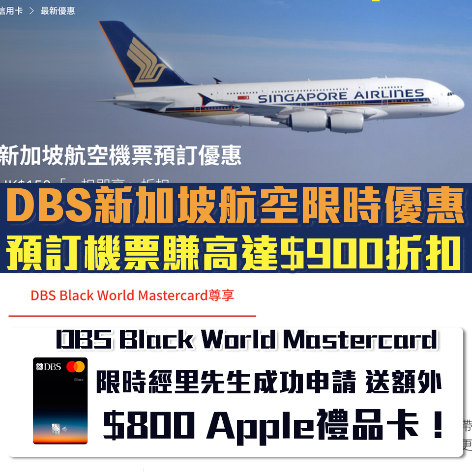 - 憑DBS Black World Mastercard於新加坡航空網站或SingaporeAir行動App預訂任何航線機票享高達HK$600「一扣即享」: