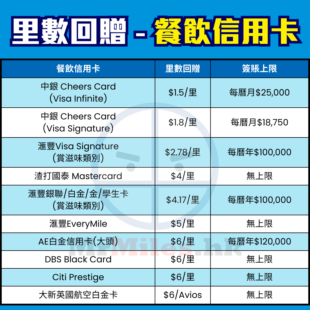飛行里數信用卡比較