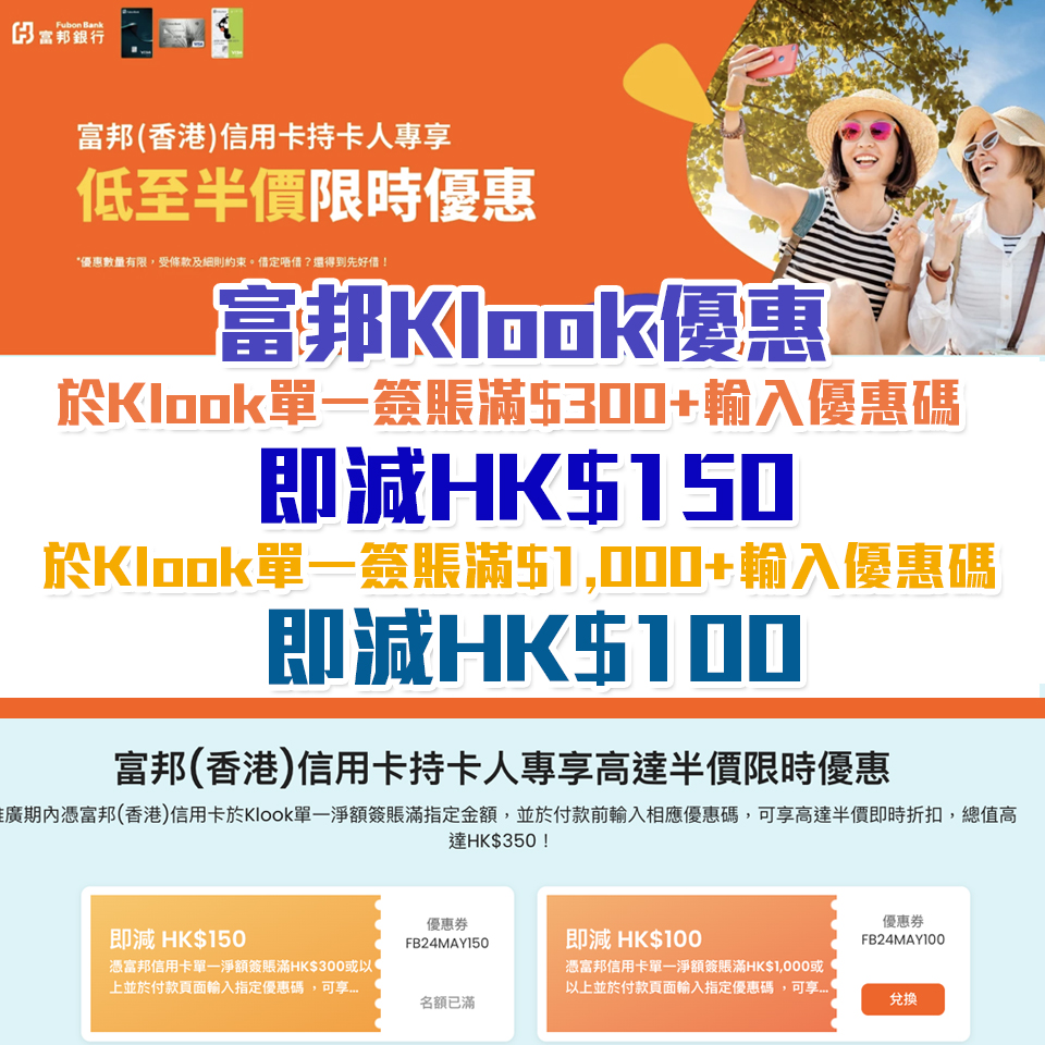 - 詳情:https://www.fubonbank.com.hk/tc/cards/monthly-special-offers/klook.html