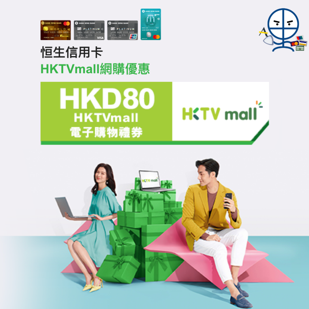 - 憑恒生信用卡於HKTVmall單一簽賬滿HK$800即減HK$80