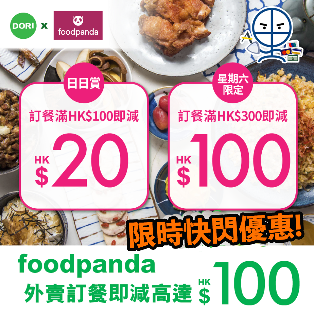 【恒生信用卡DORI快閃優惠】 foodpanda嗌外賣即減高達HK$100快閃優惠!