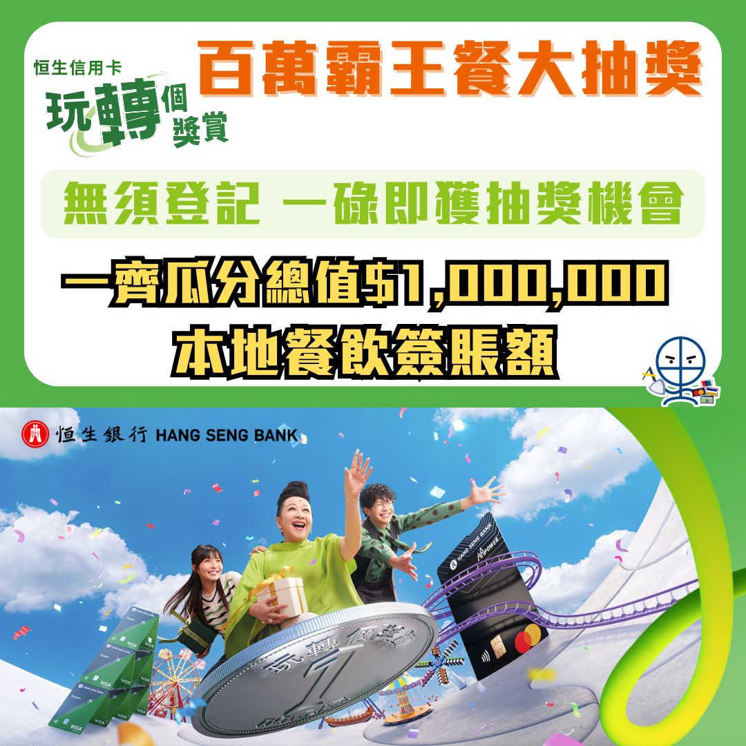恒生「玩轉個獎賞」百萬霸王餐大抽獎