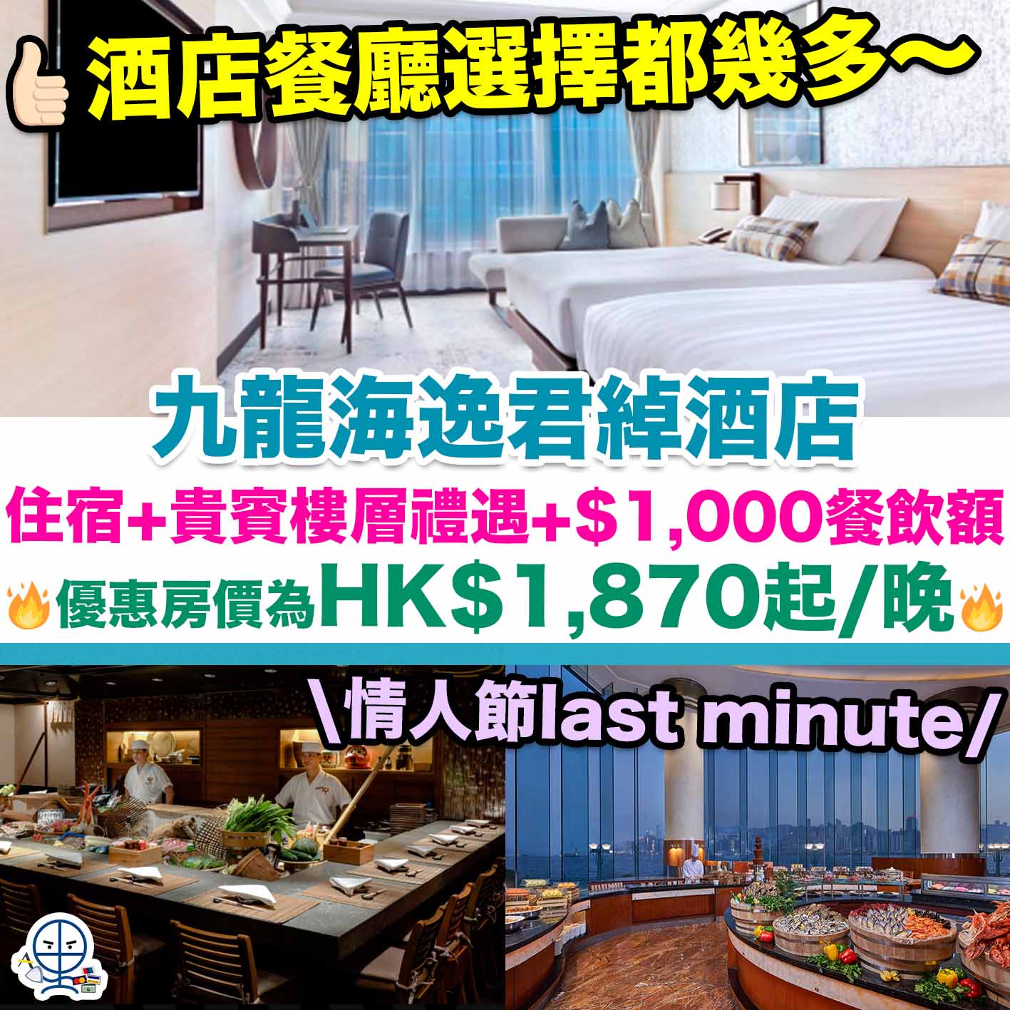 【香港九龍海逸君綽酒店Staycation優惠】貴賓園景客房+貴賓樓層禮遇+HK$1,000餐飲消費額!優惠房價為HK$1,870起/晚!