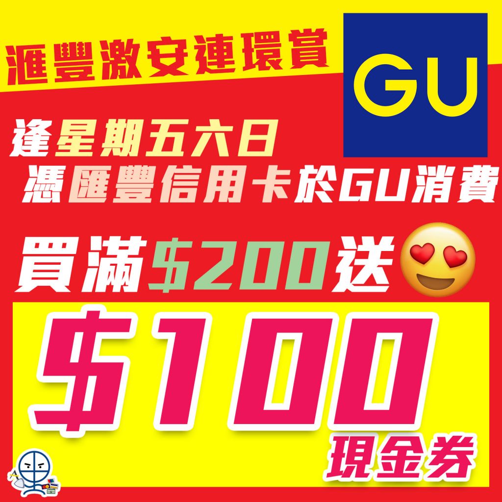 【HSBC GU優惠】激安連環賞 星期五,六及日買HK$200送返你HK$100現金券!