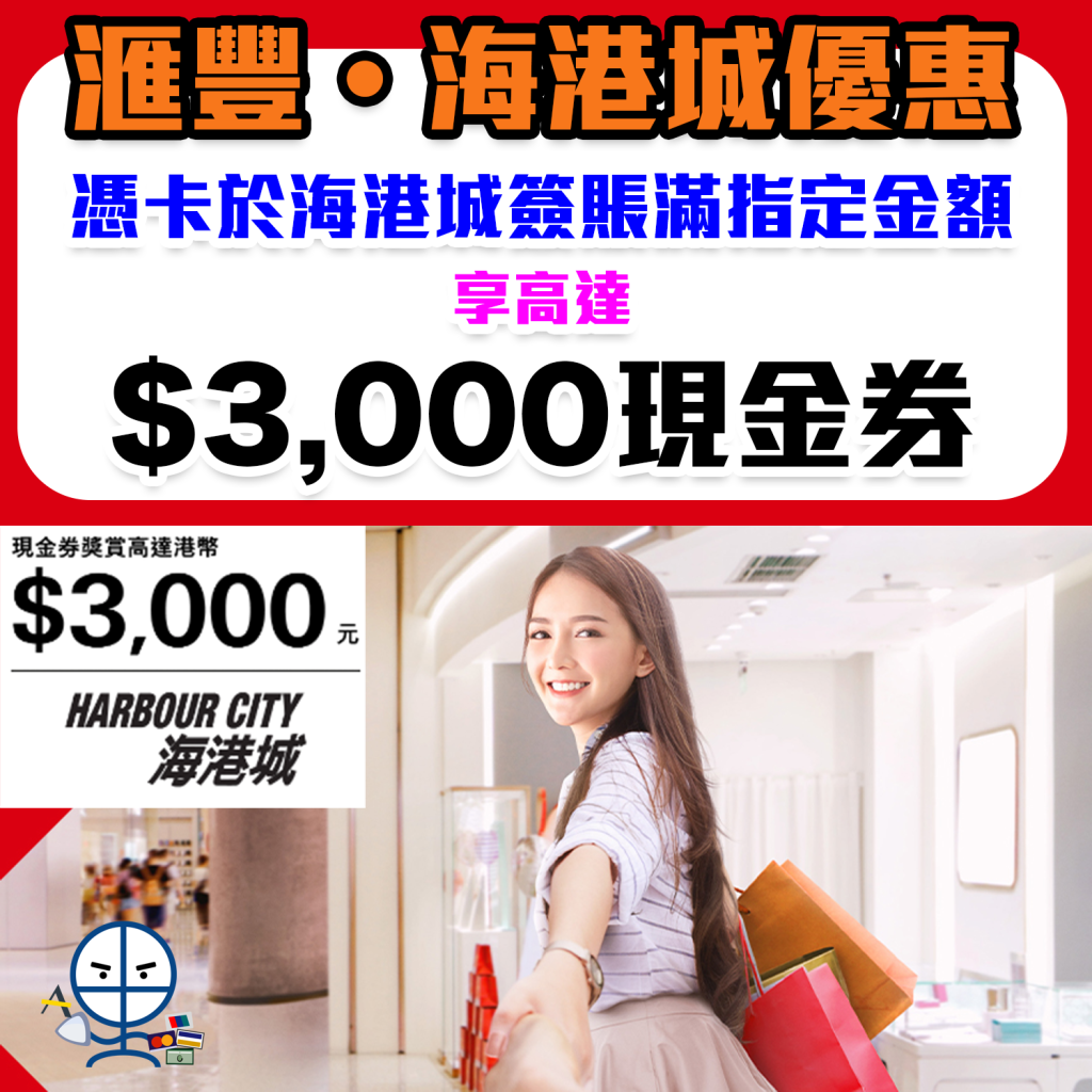 官網詳情:https://www.redhotoffers.hsbc.com.hk/tc/latest-offers/red-hot-shopping-special/harbour-city/