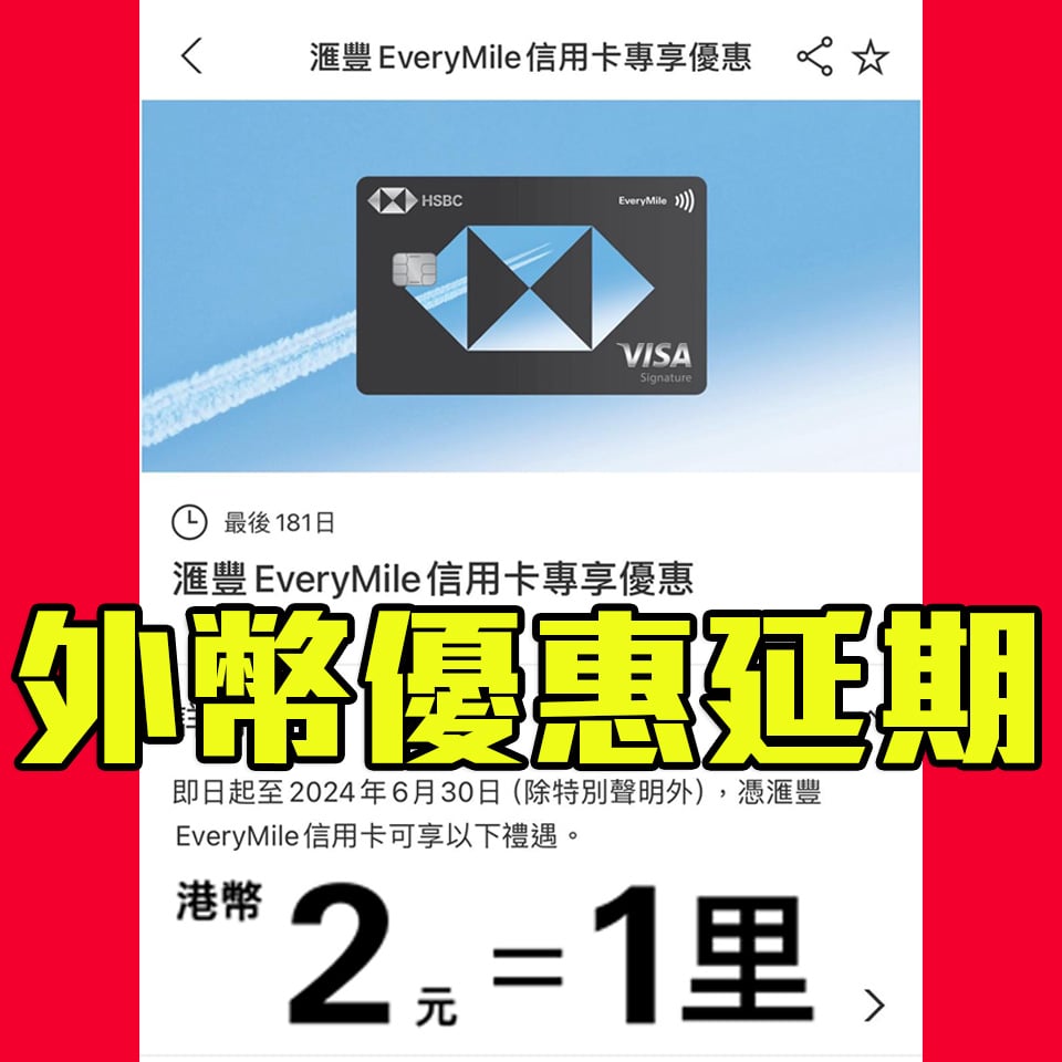 • 滙豐EveryMile信用卡額外迎新優惠期:2026年1月7日至2月28日