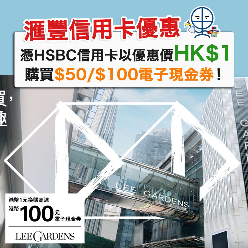 【滙豐信用卡利園區優惠】憑HSBC信用卡以優惠價HK$1購買Lee Garden $50/$100電子現金券!