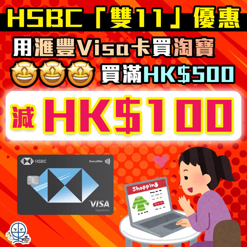 HSBC 淘寶優惠滙豐Visa簽HK$500減HK$100優惠詳情