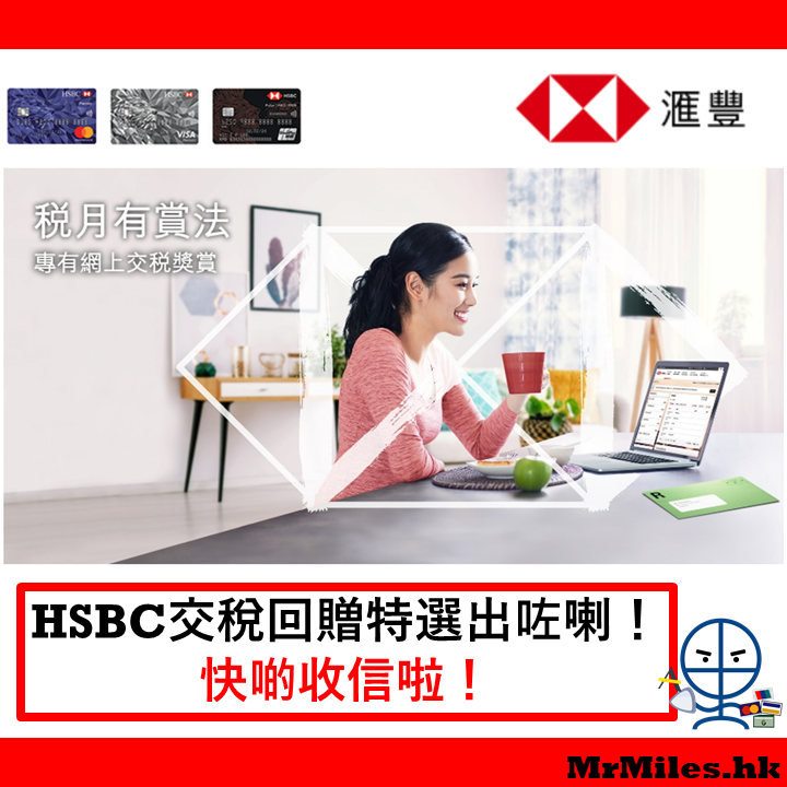 • 交稅定義: 合資格信用卡透過滙豐流動/網上理財向香港稅務局繳交之稅款(無寫一定要個人入息稅款, 睇條款利得稅都可以)