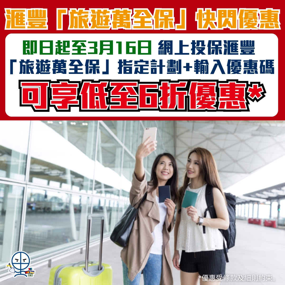 滙豐「旅遊萬全保」限時優惠碼Promo Code