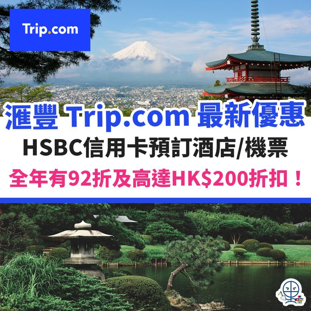 HSBC Trip.com code 優惠碼 11月最新EveryMile有9折!其他滙豐信用卡 Trip.com discount promo code 全年優惠92折!!憑HSBC信用卡於Trip.com指定網頁 / 手機App預訂酒店,再輸入指定酒店優惠碼 Promo Code就可以有92折!有滙豐卡嘅就記得要用呢個優惠慳多啲啦!用最新滙豐EveryMile信用卡簽賬更加可以用$1獎賞錢當HK$2抵扣Trip.com簽賬,首HK$1,000簽賬都可以用!仲要訂酒店有10% off及訂機票有3% off,都真係抵!