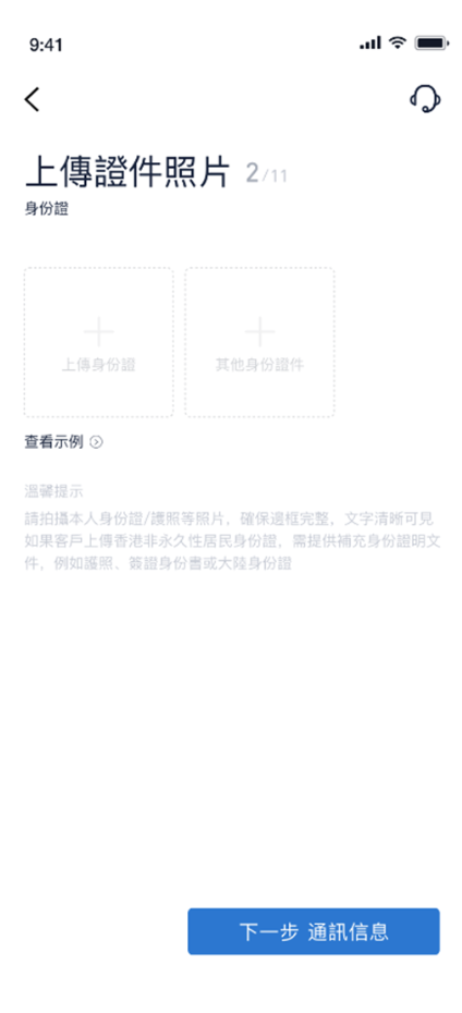 - 請注意:上傳的憑證需包含客戶名稱、匯出款項、銀行帳號、匯出金額、收款人、收款戶口號碼(請務必包含以上資訊且清晰,以免影響開戶進度)