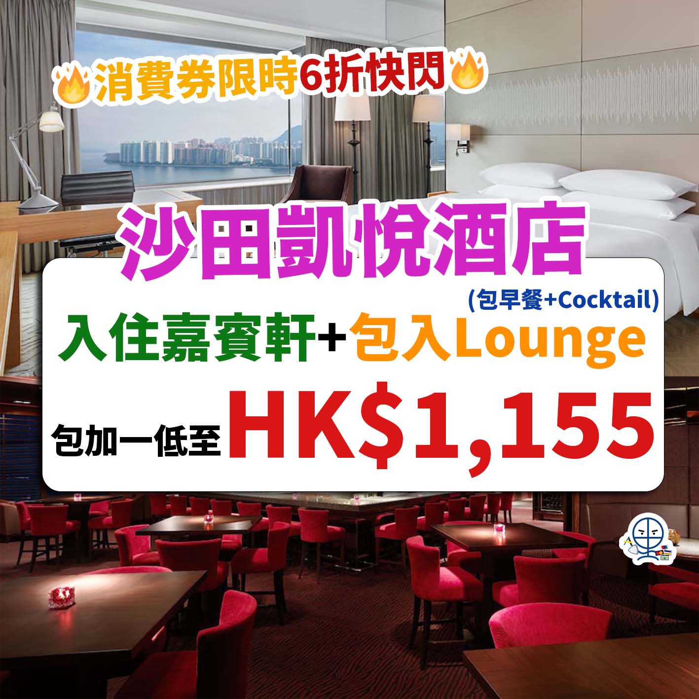 【香港沙田凱悅酒店Hyatt Regency Hong Kong, Sha Tin住宿優惠】2022消費券快閃優惠!6折宅度假住宿計劃優惠!住宿連入Lounge包早餐及Cocktail 一晚連服務費低至HK$1,155!
