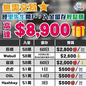 • 加總以上,迎新可賺HK$1,800現金回贈