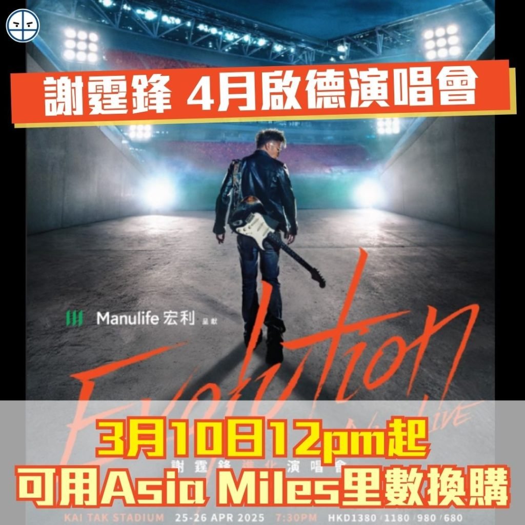 謝霆鋒香港演唱會2025 Asia Miles里數換購