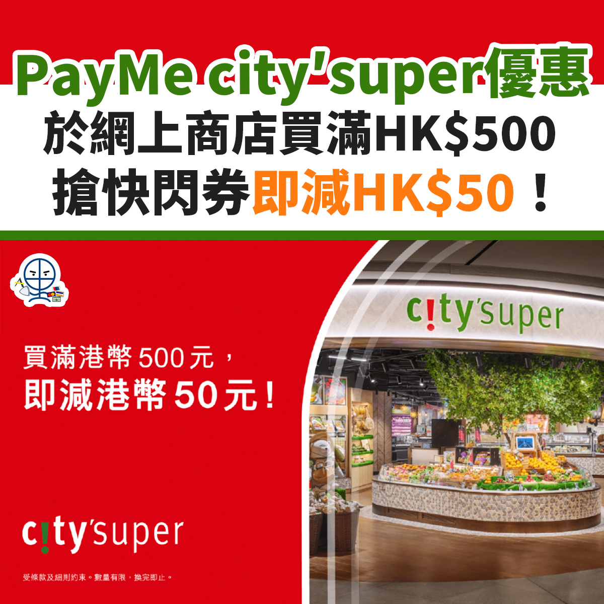 PayMe city’super優惠︱於網上商店買滿HK$500即減HK$50!