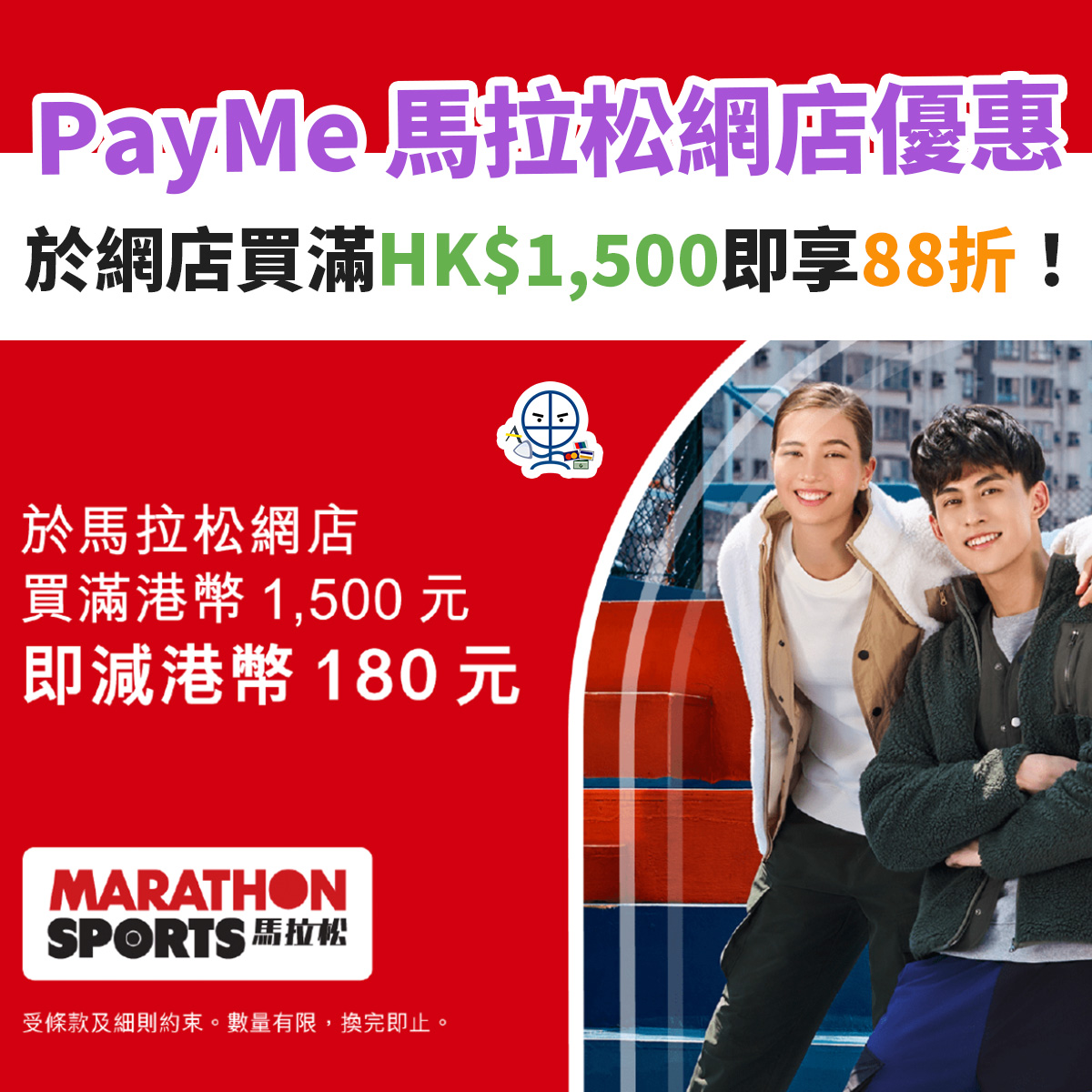PayMe 馬拉松網店優惠︱買滿HK$1,500即減HK$180!即88折!輸入優惠碼即可使用!