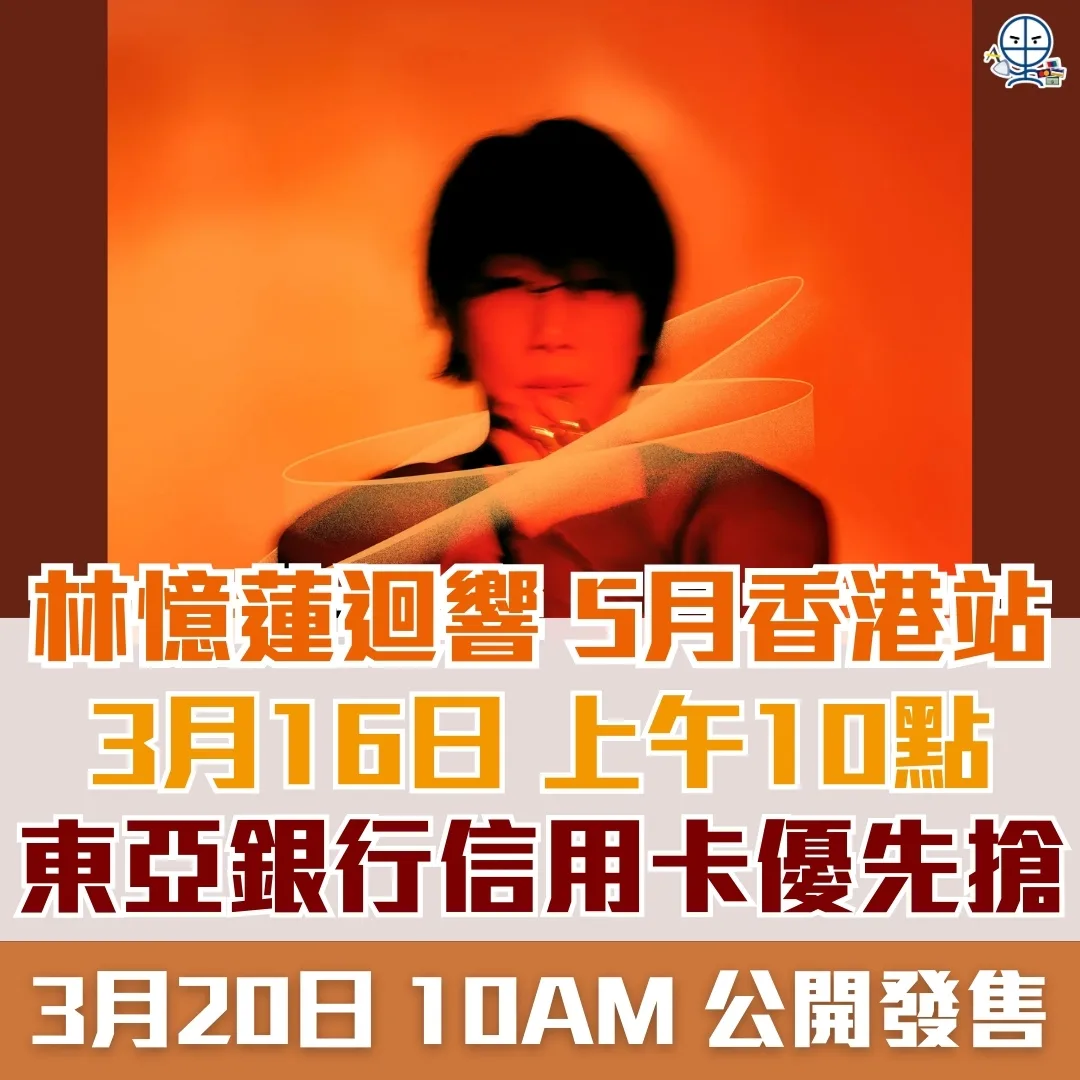 相隔9年,林憶蓮(Sandy)終於返香港開個唱!林憶蓮《迴響巡迴演唱會》(RESONANCE: Reconstructed Hong Kong Exclusive) 將於2026年5月於啟德主場館舉行。今次巡演以「崩壞、倒塌、重生」為主題,香港站更會重新構建專屬歌單。今次由東亞銀行信用卡有獨家優先訂票權!即睇搶飛詳情、票價及邊張東亞卡最抵用!