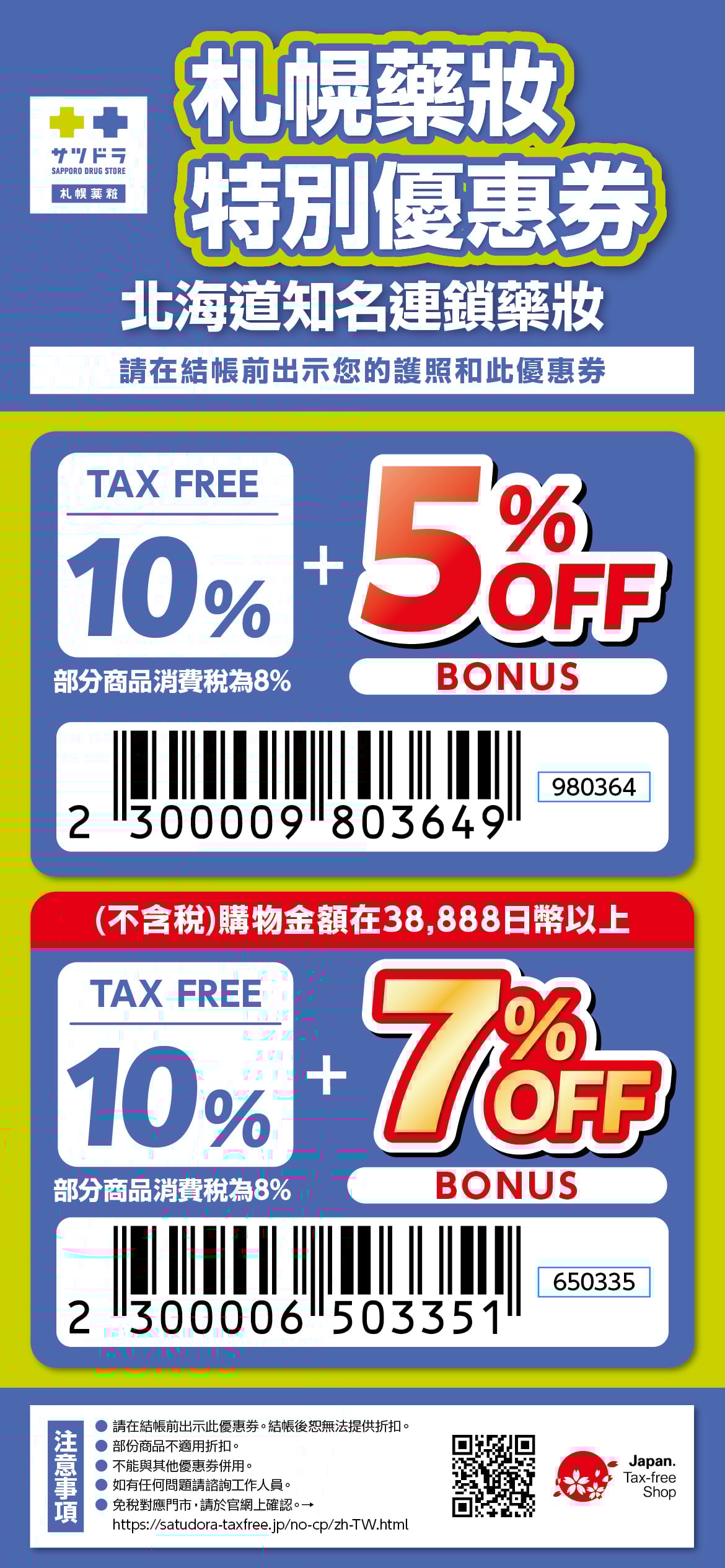 - 里先生獨家日本札幌藥妝優惠券,俾錢時出示相應QR Code同護照即可享用優惠
