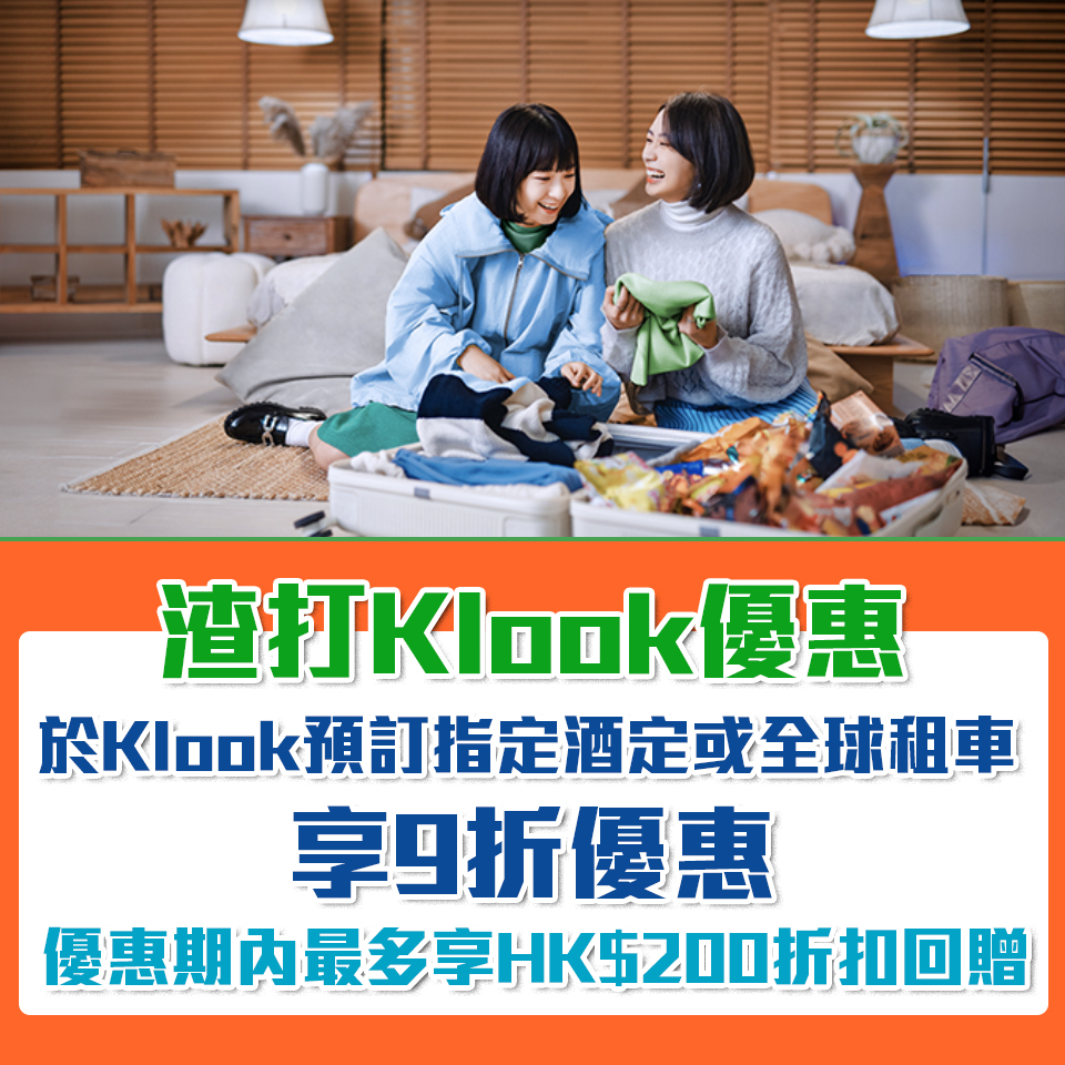 渣打Klook折扣優惠!憑渣打信用卡喺klook預訂指定酒店或全球租車可享低至9折優惠,優惠期由即日起至2024年6月30日。