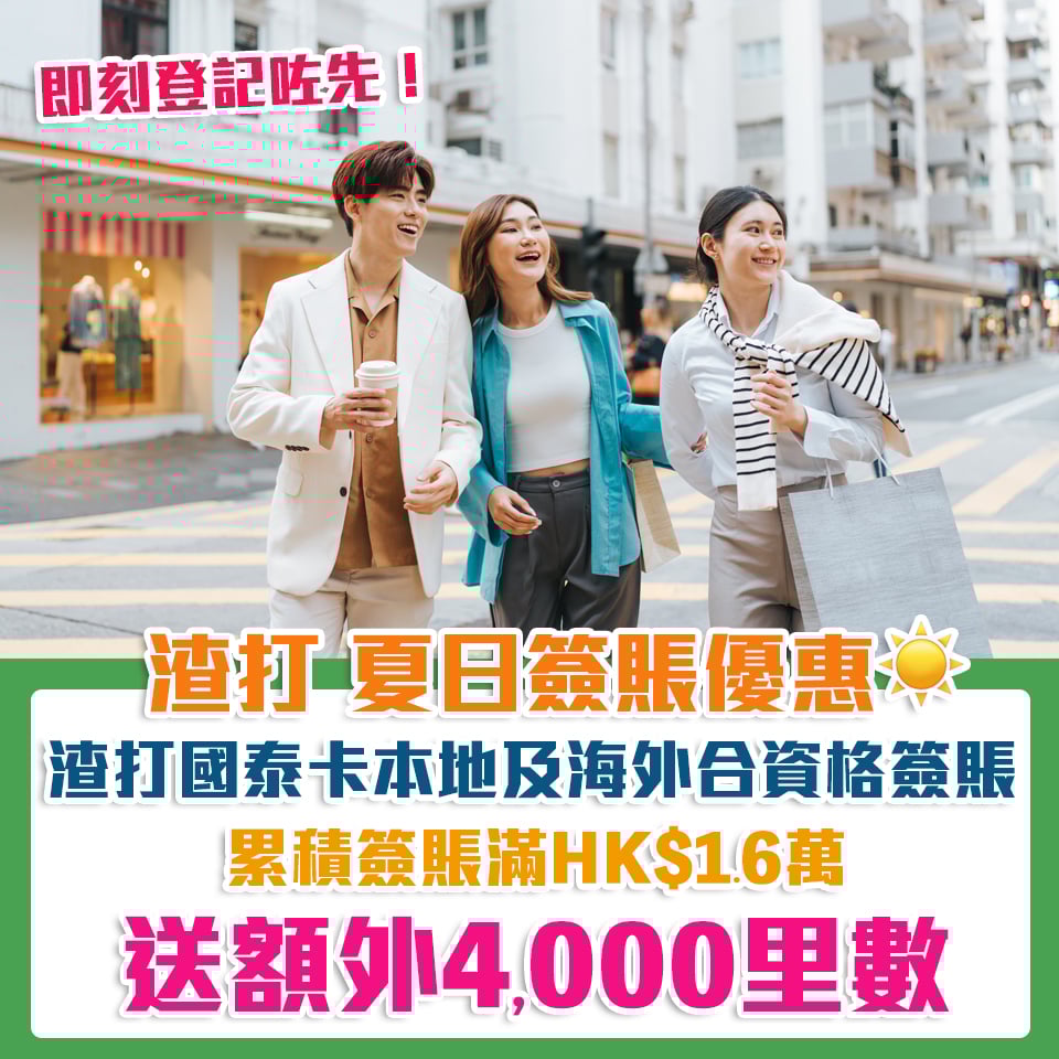 快啲登記呀🔥渣打出咗夏日簽賬優惠,即日起至2024年9月15日期間,憑已登記渣打國泰Mastercard®️喺推廣期內累積HK$16,000或以上本地 或 海外零售購物簽賬或網上消費送額外4,000里數!名額有限首30,000個成勁登記持卡人。大家快啲去指定連結登記咗先去shopping啦!