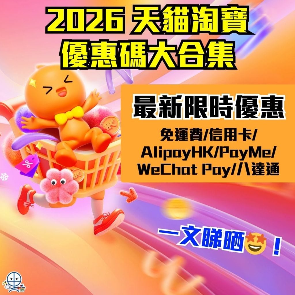 活動優惠期由2026年1月4日至2月11日,淘寶主打官方優惠88折起,疊大額券77折起!仲有淘咩都包,$0運費終極著數!記得用埋里先生嘅淘寶優惠嗎,幫你折上折落單!