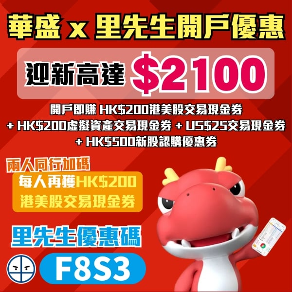 以上優惠均受條款及細則約束,詳細請瀏覽連結內容。本廣告由華盛提供資訊;投資涉及風險,此貼文內容謹供參考,不構成任何邀約或買賣建議。投資前請自行注意風險。